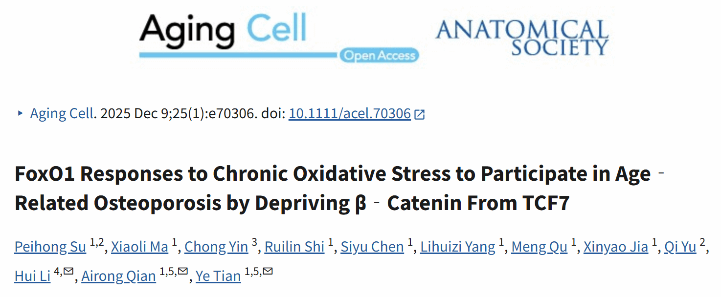 生命科学与技术学院骞爱荣教授团队在老年性骨质疏松发病机制方面取得重...