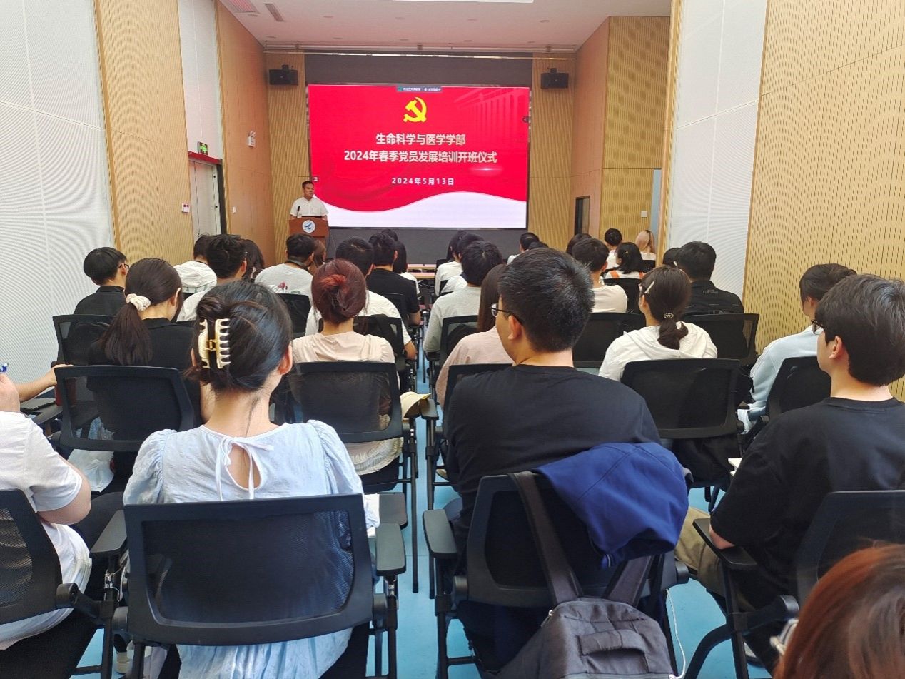5月13日,生命科学与医学学部举办了2024年春季党员发展培训班开班仪式暨第一讲。学部党委书记段利兵做开班动员,并讲授了《把泪焦桐成雨--学习弘扬焦裕禄精神 坚定理想信念》的专题党课。学部入党积极分子、发展对象共计70余人通过线上线下结合的方式参加。