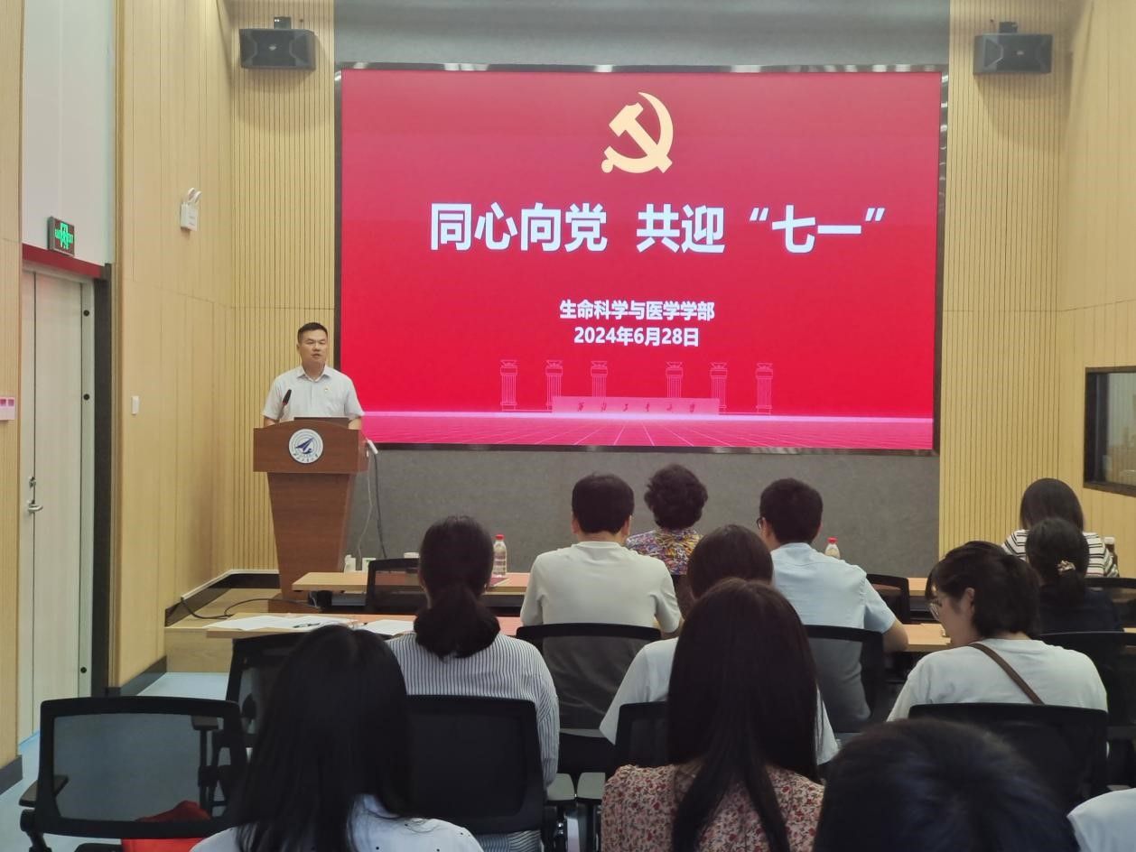 为深入学习习近平新时代中国特色社会主义思想和党的二十大精神,扎实开展党纪学习教育,凝聚学部师生力量、坚定理想信仰,6月28日,生命科学与医学学部开展了“同心向党 共迎‘七一’”主题活动。党委组织部五级职员李彩香老师,学部党委书记段利兵、副书记张敏乔,各支部支委和师生党员代表参加活动,活动由段利兵主持。