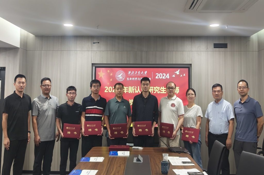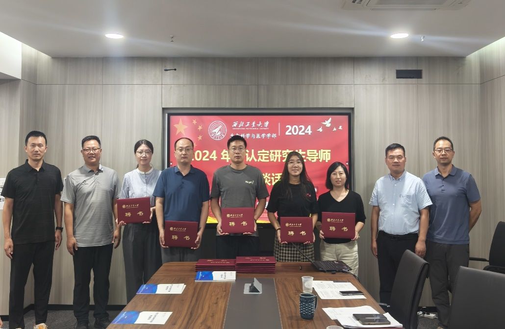 段利兵与新认定导师签署了研究生导师岗位责任书。谈话小组向新认定导师颁发聘书并与新认定导师合影留念。