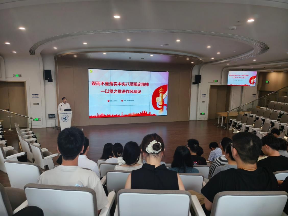 最后,段利兵讲授了《锲而不舍落实中央八项规定精神 一以贯之推进作风建设》专题党课,强调要扎实开展深入贯彻中央八项规定精神学习教育,持续巩固深化党纪学习教育成果,推进作风建设常态化长效化,以坚强作风为学部高质量发展保驾护航。