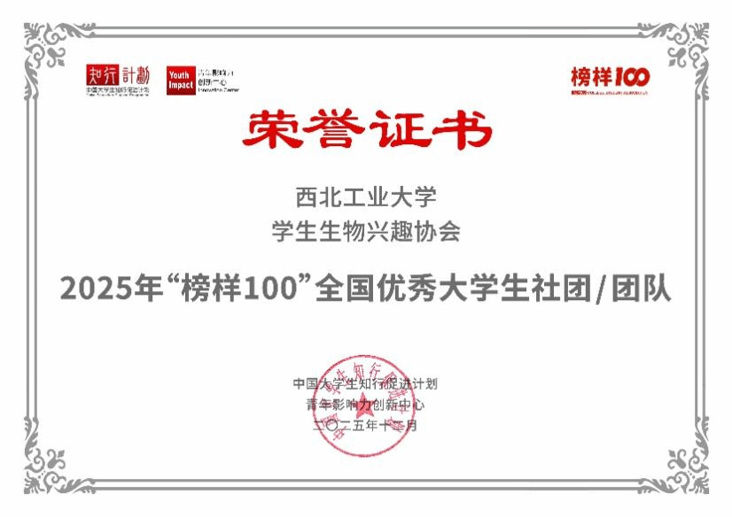 近日,2025“榜样100”全国优秀大学生社团榜单正式揭晓,西北工业大学学生生物兴趣协会凭借扎实的社团建设与丰富的科普实践,成功入选这一全国性青年集体荣誉。这是该协会 自2023年以来连续3次获此殊荣。