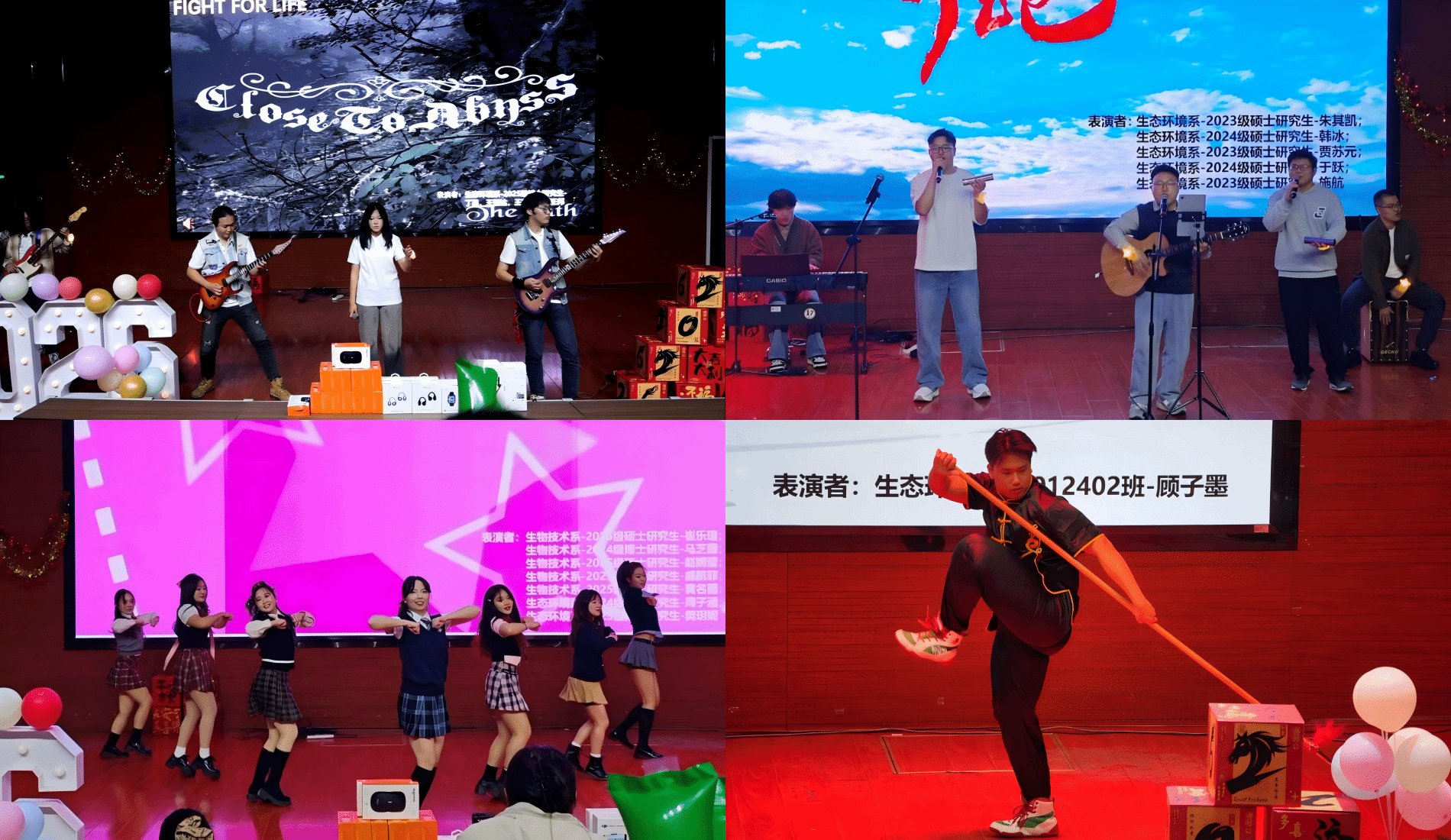 本次联欢会为全院师生呈现了一场兼具青春活力与学术情怀的视听盛宴。活动以“青春生科・音舞飞扬”“科创生科・致远追光”“活力生科・聚势启航”三大篇章串联,穿插趣味游戏互动与多轮重磅抽奖,内容丰富、节奏紧凑,全程高潮迭起。