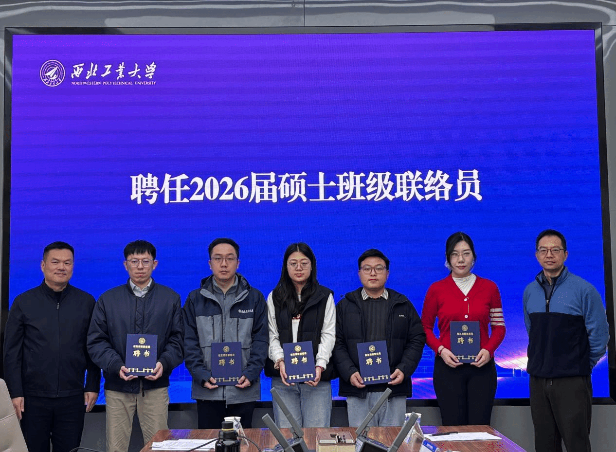 会上举行了2026届硕士班级联络员聘任仪式,段利兵与蔡晶共同为5位班级联络员颁发聘书,勉励大家切实履行联络服务、信息传递、桥梁沟通的职责。随后,高山作为联络员代表发言,表示牢记使命、恪尽职守,全力当好学院与毕业生之间的沟通纽带。