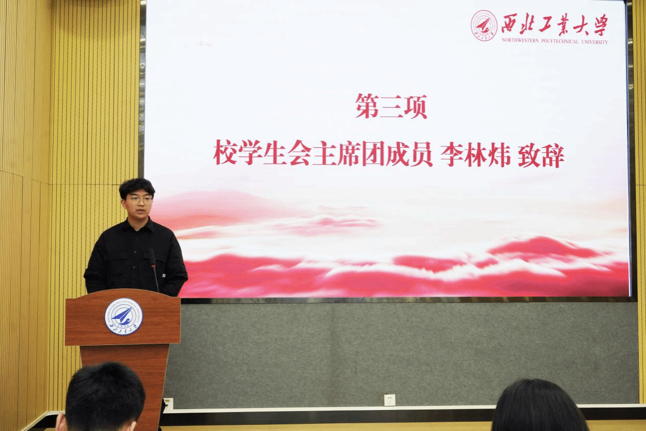 校学生会主席团成员李林炜致辞,向大家提出三点希望:一是勤于学习、善于学习,二是落实权益、保障到位,三是巩固成果、确保实效,并祝愿生态环境学院学生会能够取得更加优异的成绩。