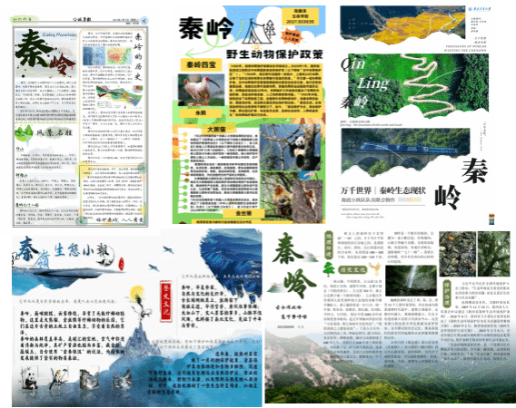 活动推出“绿染三秦”生态小报绘制活动。参与者需从秦岭风景、自然资源、历史文化、政策保护等角度,利用所学知识及个人创意,绘制出生动的生态小报。经过激烈的角逐,产生了一批优秀的作品:主题鲜明,内容丰富,形式多样,充分展现出同学们对秦岭生态的关注和热爱。