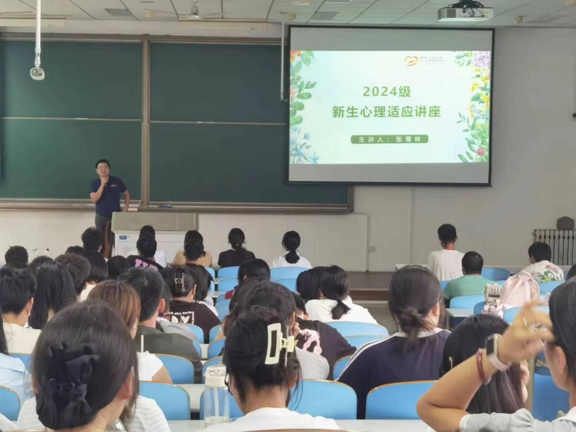 最后,张老师阐述了大学生心理适应不良的具体表现以及可能影响大学生心理适应的来源,并提出了大学生心理适应的调适策略,分享了学校丰富多彩的心理健康服务。他指出,心理健康教育中心始终致力于为每一位西工大学子提供服务,除了常规的心理咨询,还有形式多样的朋辈互助、心理游园会、手语操大赛等活动,为同学们排忧解难。他衷心祝愿在场的 2024 级新生们都能拥有美好的心灵,具备爱与成就的能力!