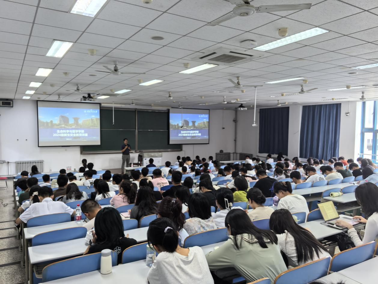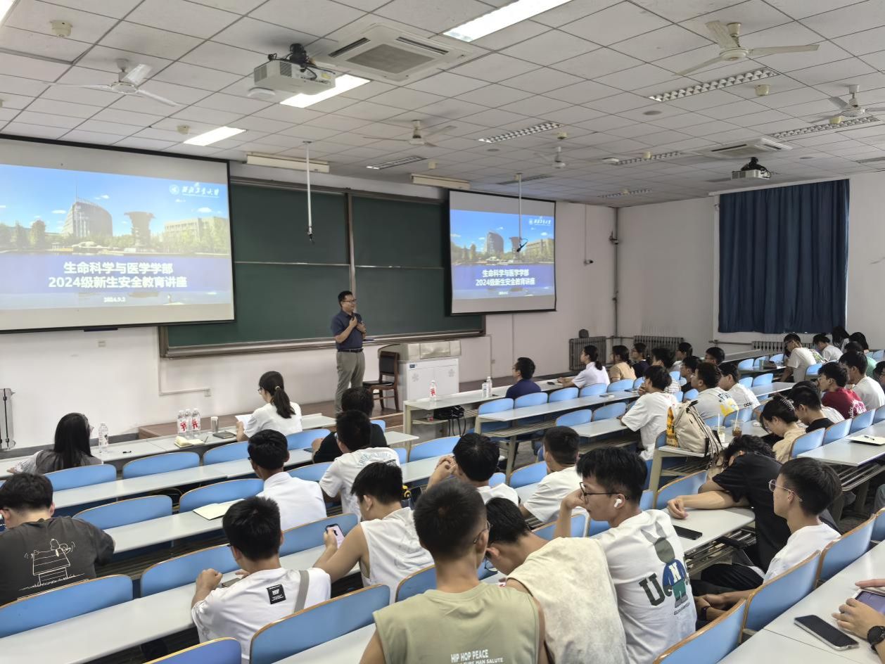 为助力 2024 级新生更好地适应校园生活,进一步提升其心理素质、安全防范素养及危机处理能力,使其尽快融入校园,顺利完成角色转换,2024 年 9 月 2 日下午,生命科学与医学学部精心组织并举办了一场独具特色的“新生心理适应与心理健康教育”讲座以及“新生安全教育”讲座。