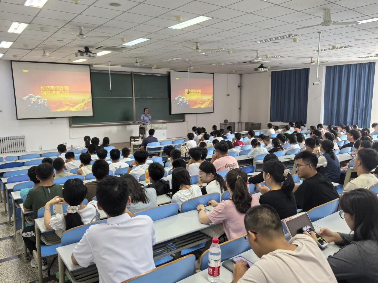 吕警官从诈骗及电信网络诈骗的定义与特点入手,生动形象地向新生们传递了正确的防范意识。紧接着,她向同学们阐明了当前电信网络诈骗形势的严峻性与方式的多样性,深入剖析了电信诈骗的常见手法、危害后果及防范措施。通过分析网络刷单诈骗、购物诈骗、虚假投资理财诈骗、AI 换脸诈骗等常见诈骗手段,深入浅出地阐释了电信诈骗的最新趋势、识别技巧及应对策略。此外,吕警官还通过播放案例采访视频,直观地向新生们展示了 AI 换脸诈骗手段的危害性,并通过互动形式邀请大家分享自己身边的诈骗案例,警示大家诈骗并不遥远,同学们应时刻保持警觉。吕警官告诫大家,诈骗的技术和手段在不断更新,同学们要增强安全防范意识,学会识别和预防电信网络诈骗,不断提高抵御电信诈骗的能力。