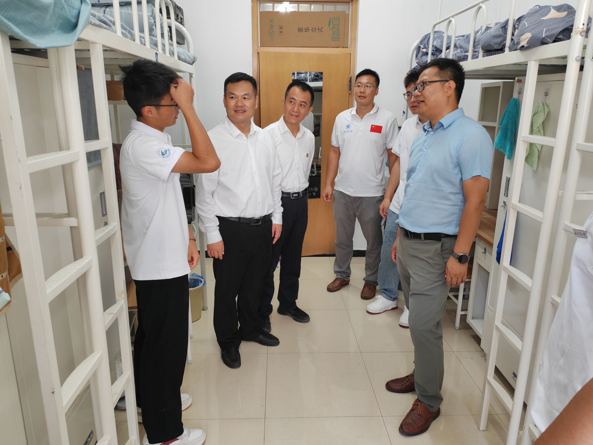 在此次走访活动中,学部党委书记段利兵带领学部领导和辅导员、班主任逐一走进新生宿舍,与刚刚迈入大学生活的同学们进行亲切交流。学部领导们详细询问了新生的家乡、饮食习惯、兴趣爱好以及对未来大学生活的规划,表达了学部对新同学们的亲切关怀,希望同学们要尽快转换角色适应大学生活,养成良好的生活学习习惯,扎实学好专业知识,加强身体素质训练,努力提高综合素养,争做德智体美劳全面发展的新时代大学生。