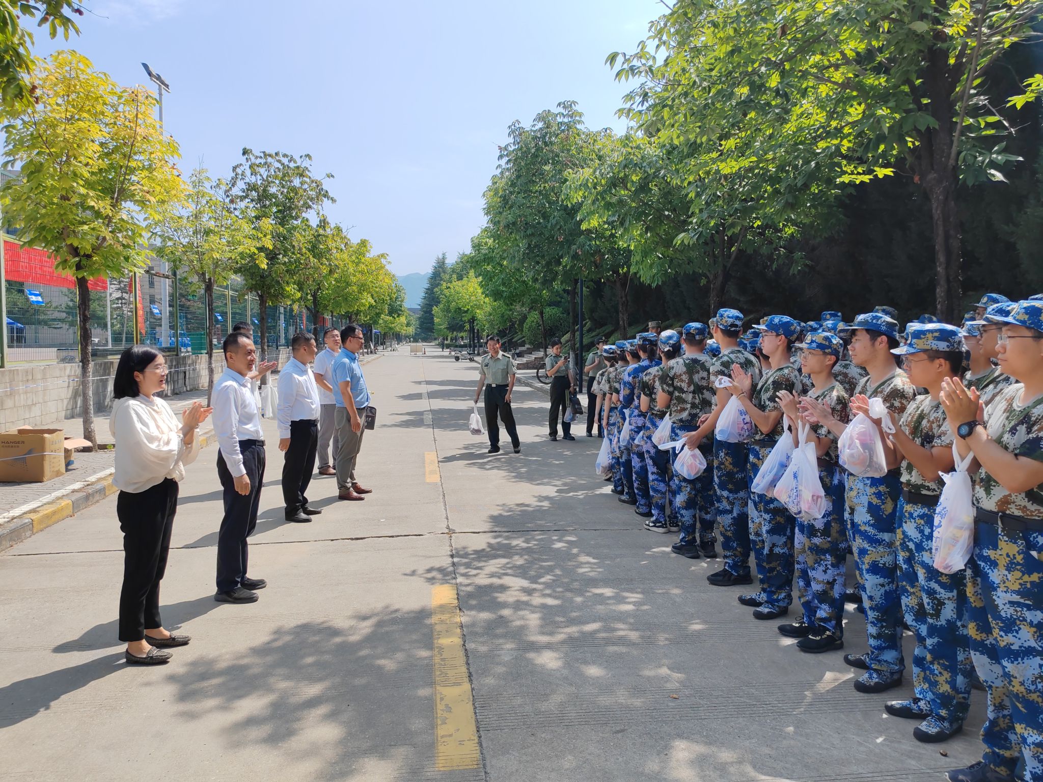 学部领导们还为教官和学生们送上了慰问品,并与他们进行了亲切交流。教官们对学部领导的关心和支持表示衷心感谢,并承诺将继续严格施训,确保军训任务的圆满完成。