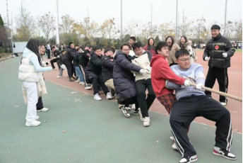 拔河赛场上,氛围热烈非凡,洋溢着浓浓的竞技激情。参赛的师生们双脚坚实地扎根地面,双手紧握绳索,仿佛将团队的信念与力量凝聚于这一线之间。“一二,一二,一二……”整齐划一的口号声,如同心脏跳动般共鸣,将每个人的心紧密相连。