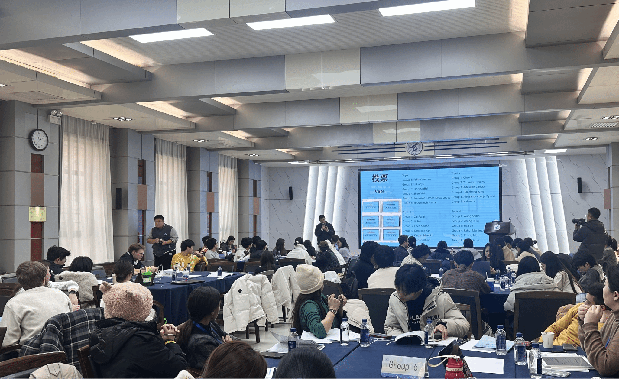 为期两天的交流气氛热烈,中欧青年代表混编分组围绕医疗AI的“数据治理”“科技前沿”“伦理法规”与“全球协作”四个议题展开深度对话。经过充分探讨,各小组凝聚共识,形成了涵盖现状剖析、解决方案与未来展望的议题成果,由24名青年代表依次登台汇报,指导老师现场总结点评。