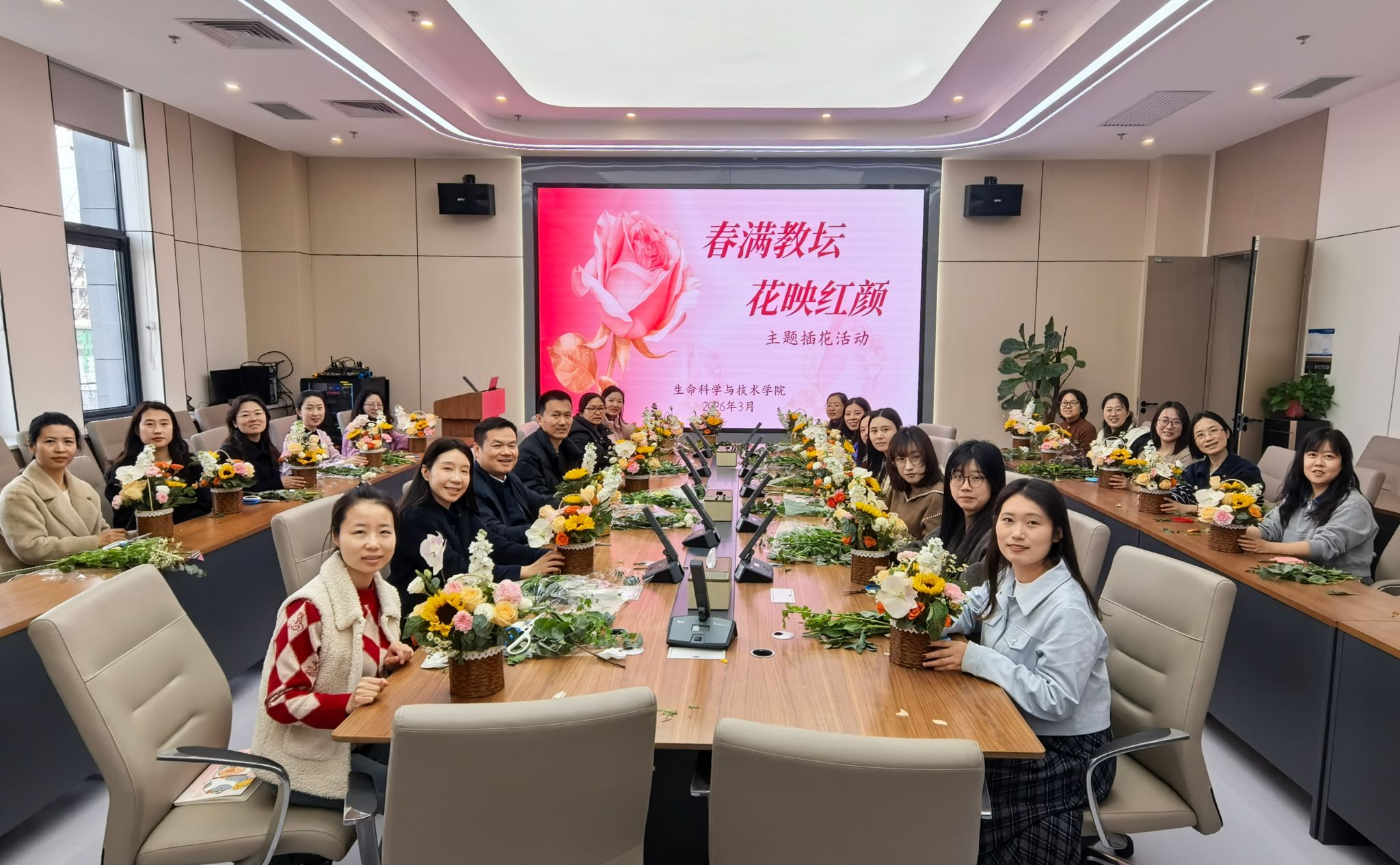 为庆祝“三八” 国际妇女节,丰富女性教职工精神文化生活,生命科学与技术学院工会举办“春满教坛 花映红颜”插花 DIY 活动,二十余名女性教职工欢聚一堂,以花为媒、以艺会友,共赴浪漫之约。学院党委书记段利兵、副院长于兆良参加了活动。