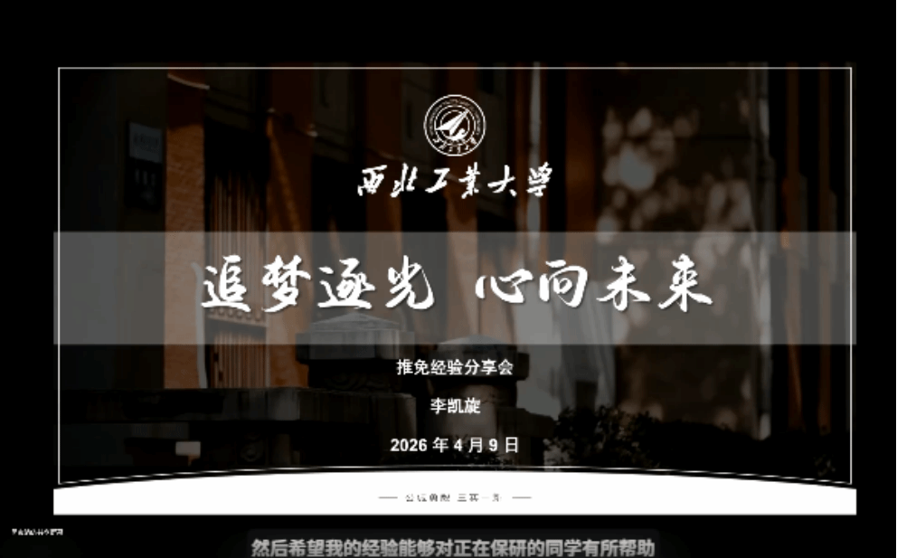 2022级生物技术系李凯旋同学线上方式分享成功保研至北京大学前沿交叉学科研究院的经历。她强调要筑牢学业基础,稳定专业成绩,主动参与科研实践,为保研推免积累综合竞争力。