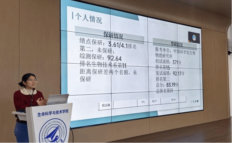 2022级生物技术系程志瑜同学成功考取中国科学院生物物理研究所。她从个人发展、备考策略、学习感悟三方面展开,系统回顾了自己大学三年的学业与科研积累,坦诚反思保研失利教训,并鼓励学弟学妹坚定信念、坚持到底。
