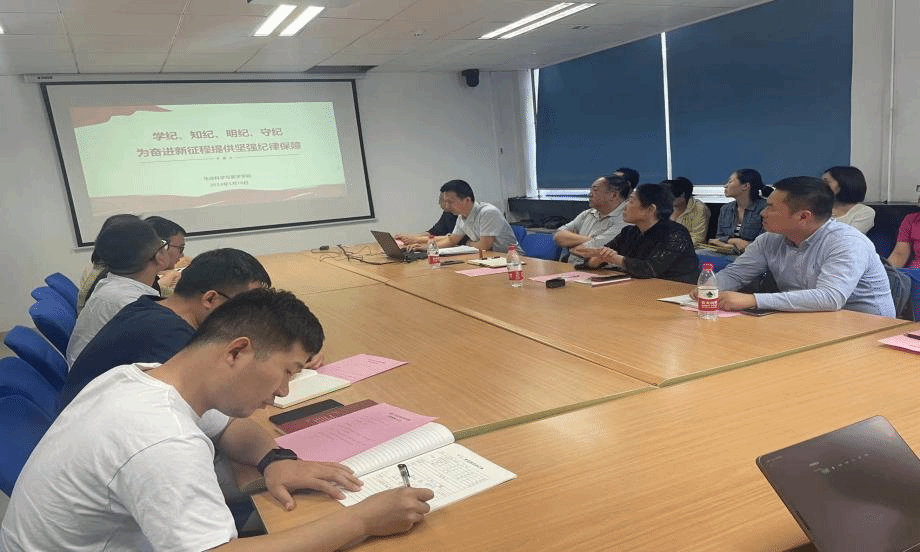 于兆良副书记向全体教职工讲述党纪学习教育党课。同时介绍了医学研究院新一轮聘岗工作,结合基本工作量、岗位设置、考核与绩效分配等相关政策进行解读。并对学生创新创业竞赛、师德师风教育、文化宣传等工作做了相关要求和部署。